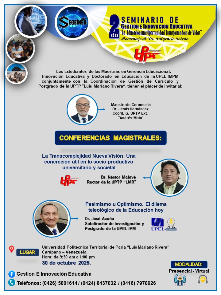 Coordinador y editor Centro de Investigación Virtual Universitario. Rector de la U.P.T.P “Luis Mariano Rivera”